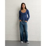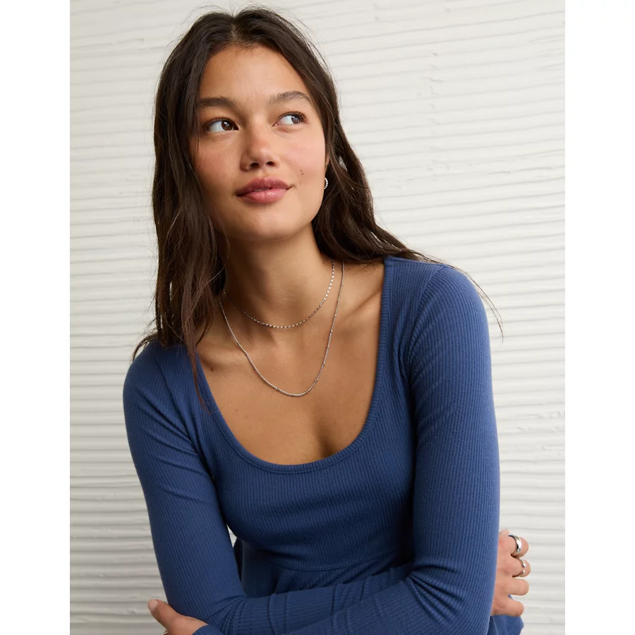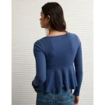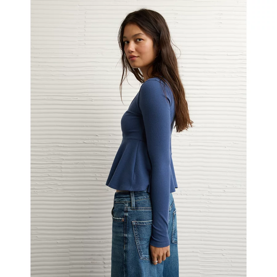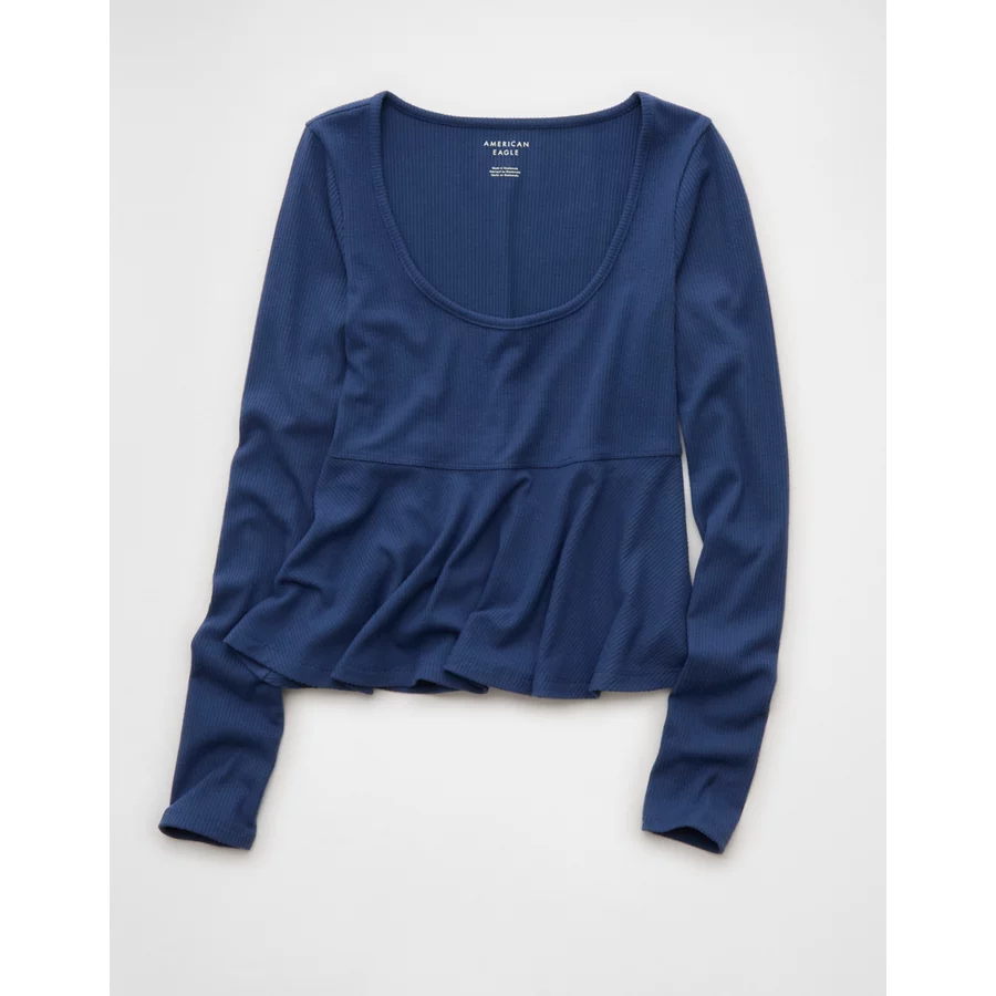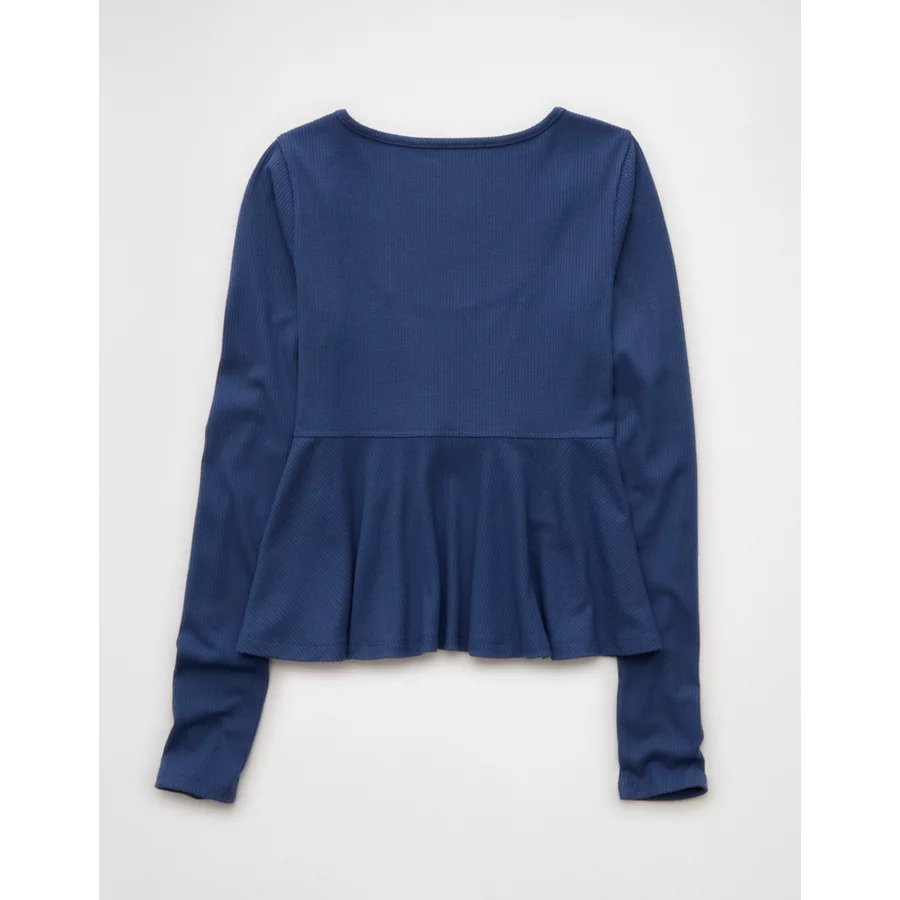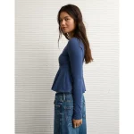 AE Long Sleeve Babydoll Top – Deep Sea Blue