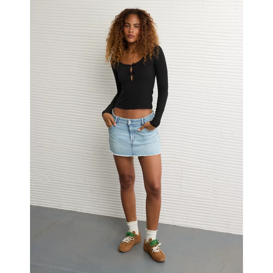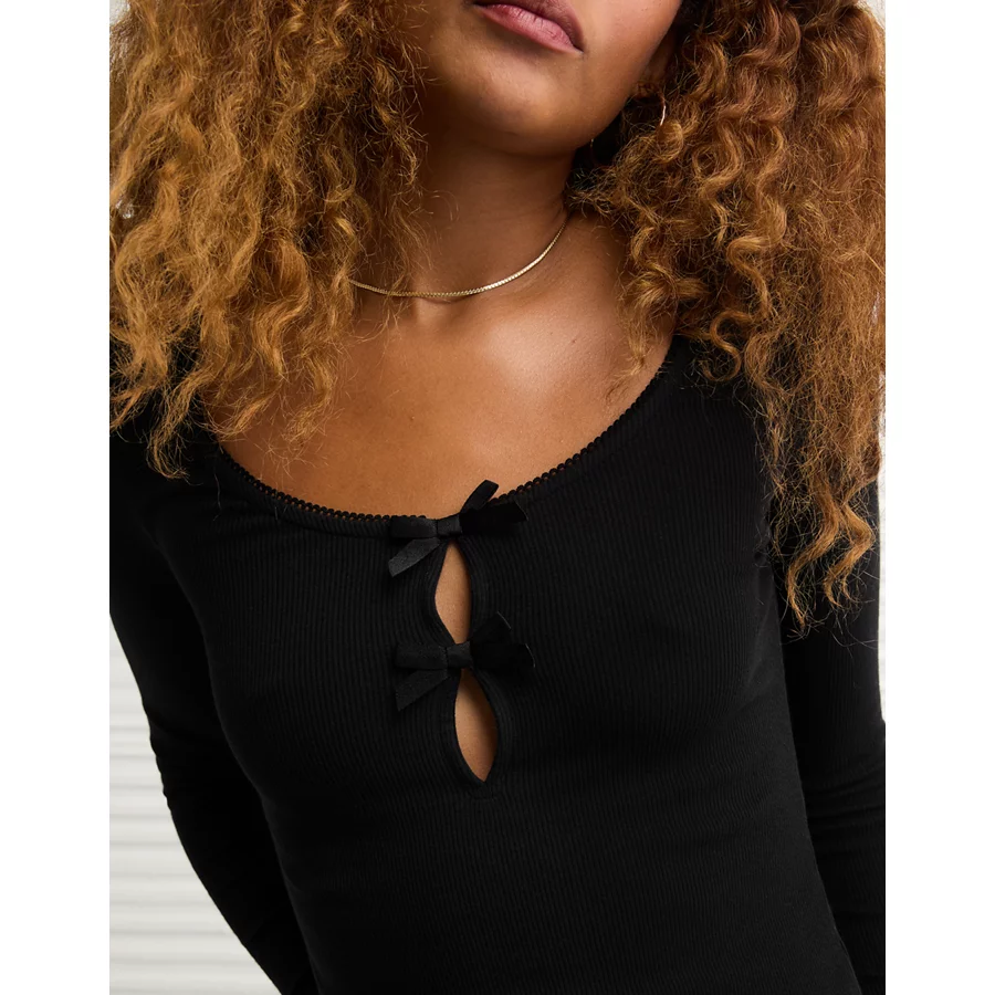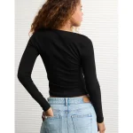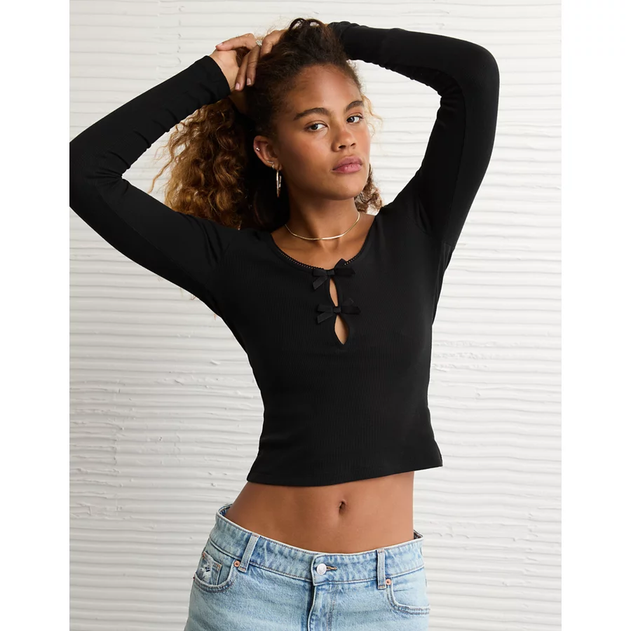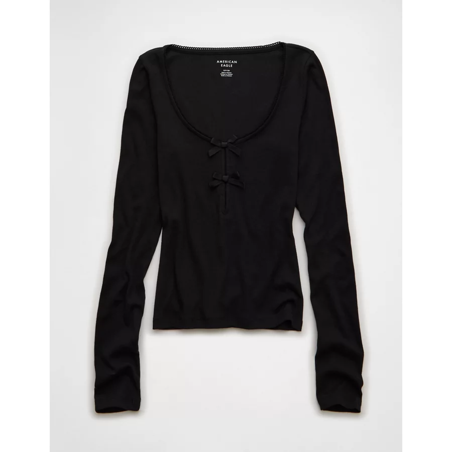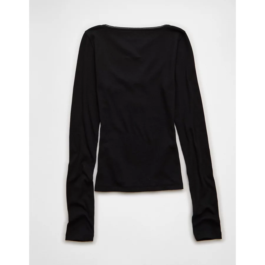 AE Long Sleeve Babydoll Top - Deep Sea Blue