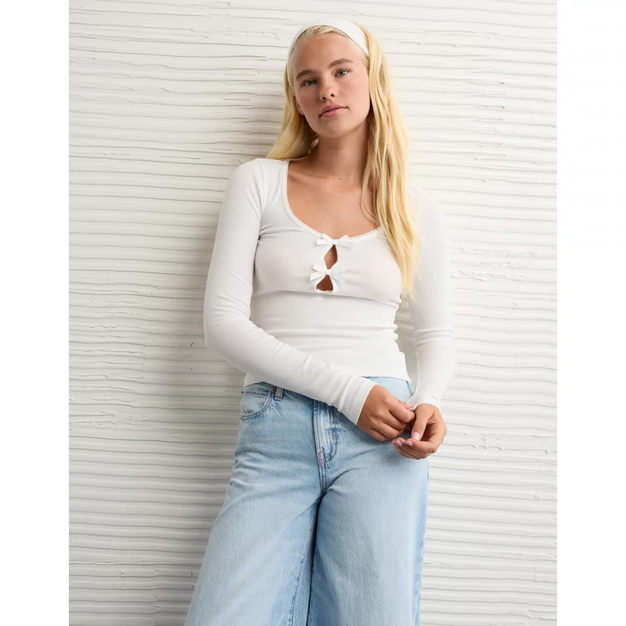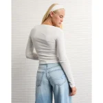 AE 11″ Dreamy Drape Stretch High-Waisted Jort – Light Tinted Wash