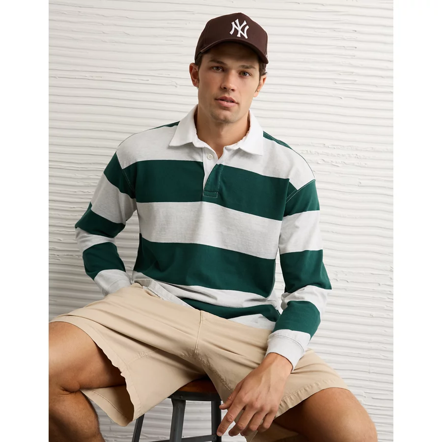 AE Long Sleeve Boxy Rugby Polo Shirt – Green