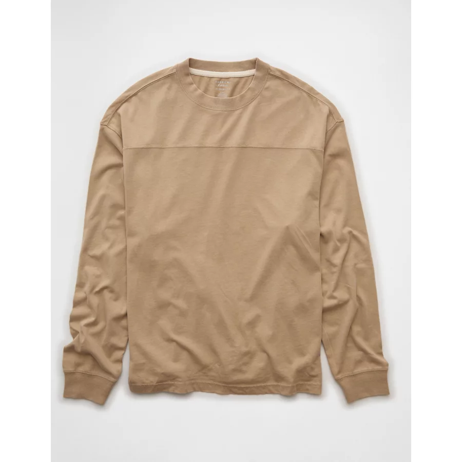 AE Long-Sleeve Boxy Sueded Jersey T-Shirt – Khaki