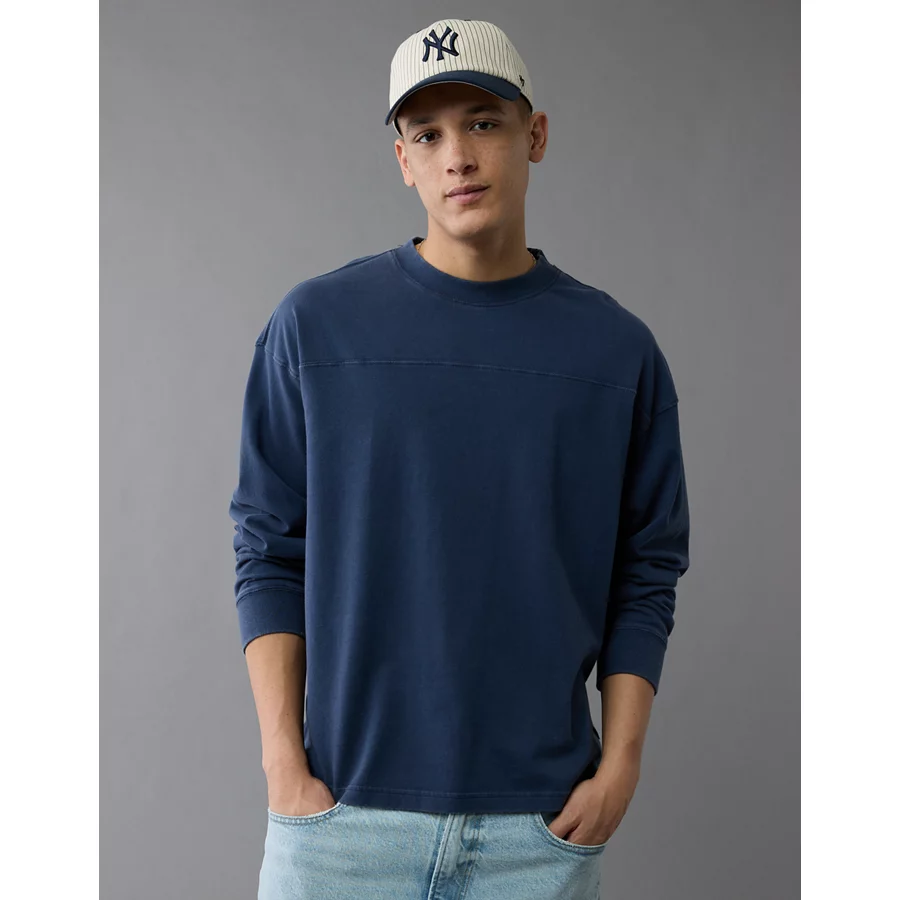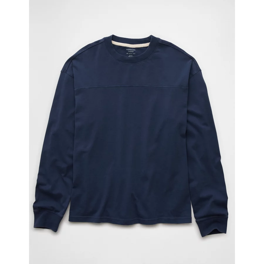 AE Long-Sleeve Boxy Sueded Jersey T-Shirt – Midnight Blue