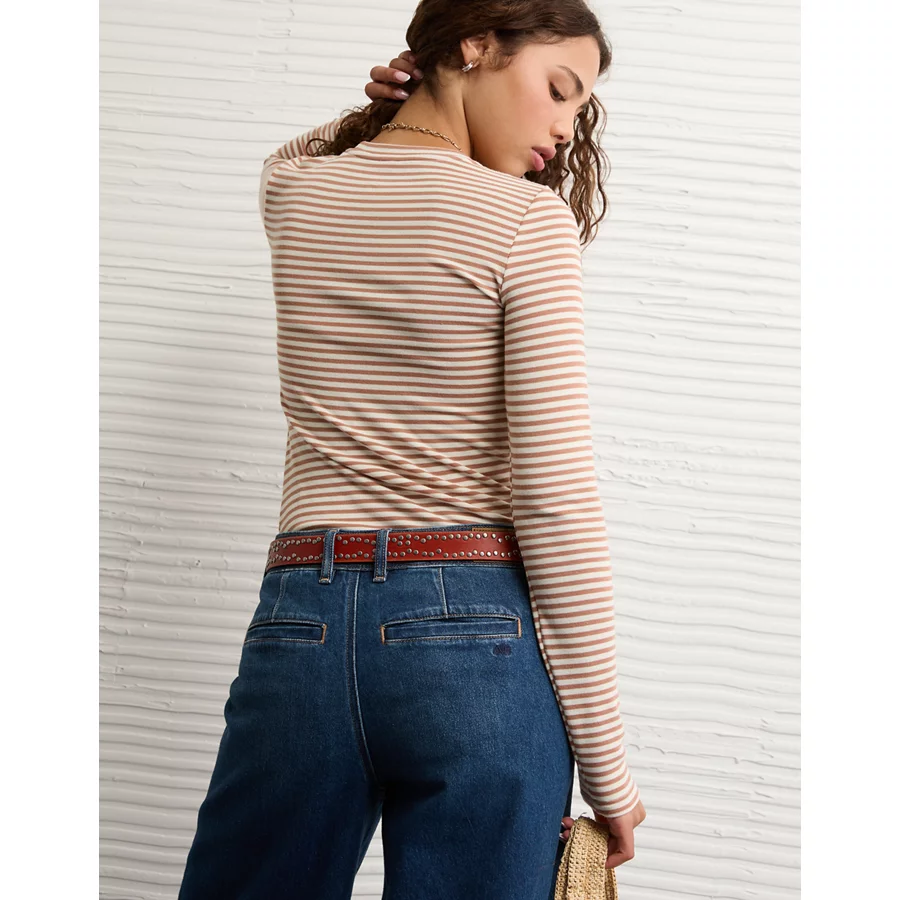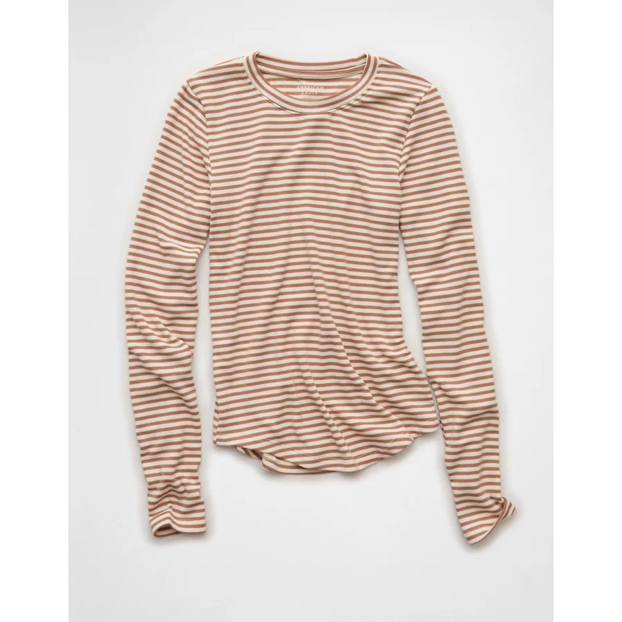 AE Long Sleeve Cozy Crew Neck T-Shirt – Brown