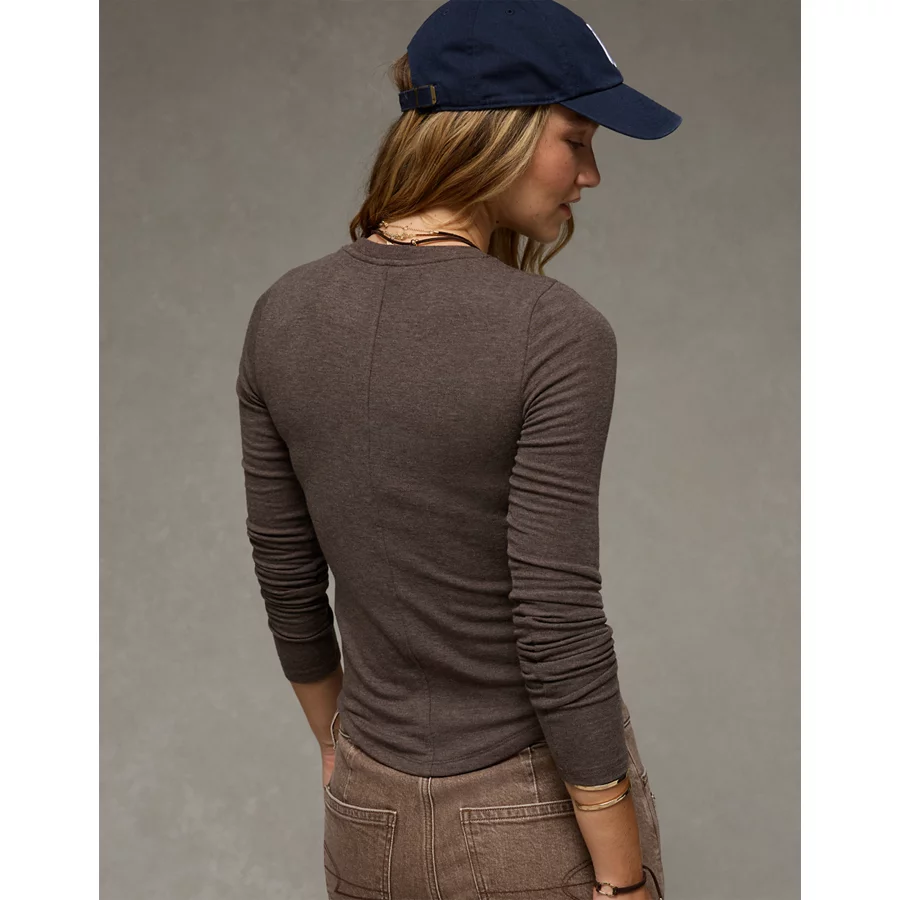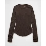 AE Long Sleeve Cozy Crew Neck T-Shirt – Chocolate
