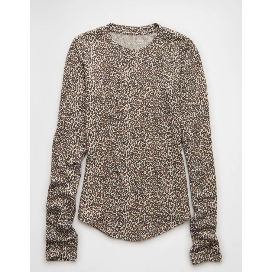 AE Long Sleeve Cozy Crew Neck T-Shirt – Dark Brown