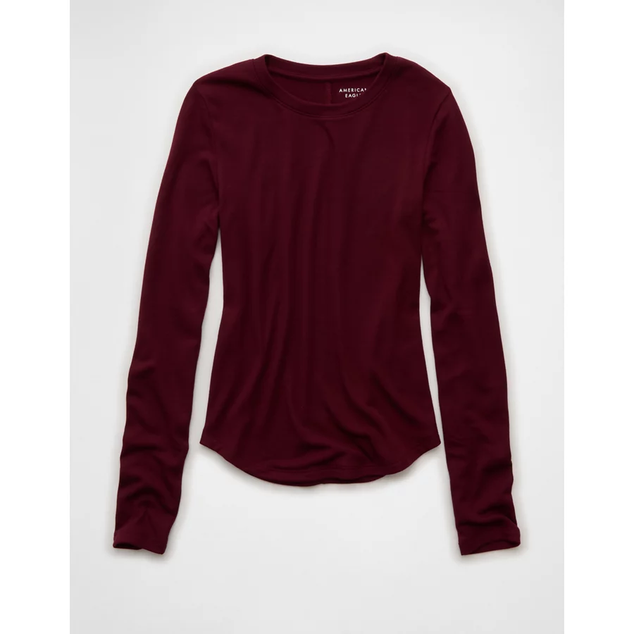 AE Long Sleeve Cozy Crew Neck T-Shirt – Preppy Red