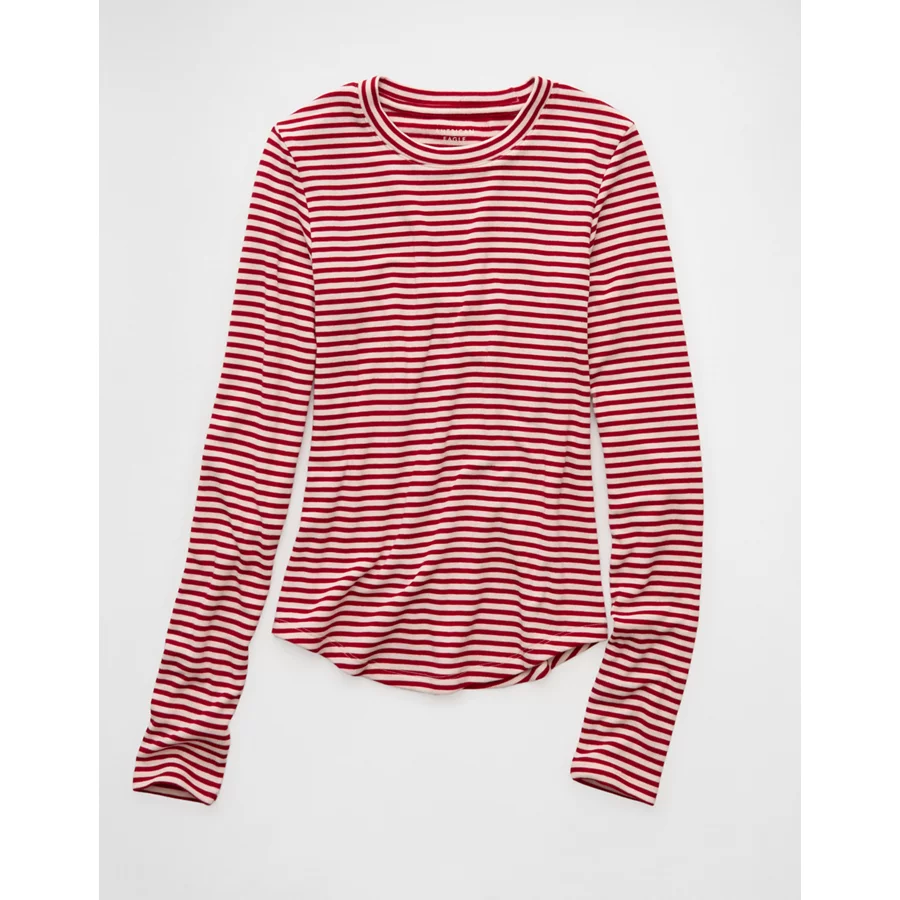 AE Long Sleeve Cozy Crew Neck T-Shirt – Red