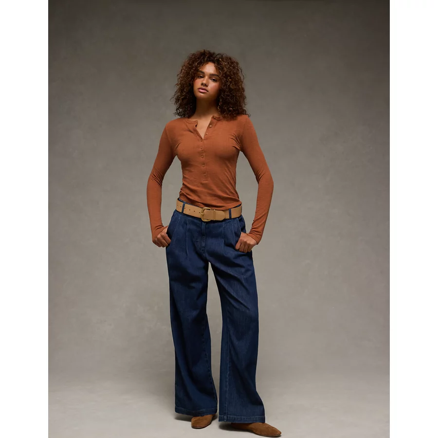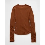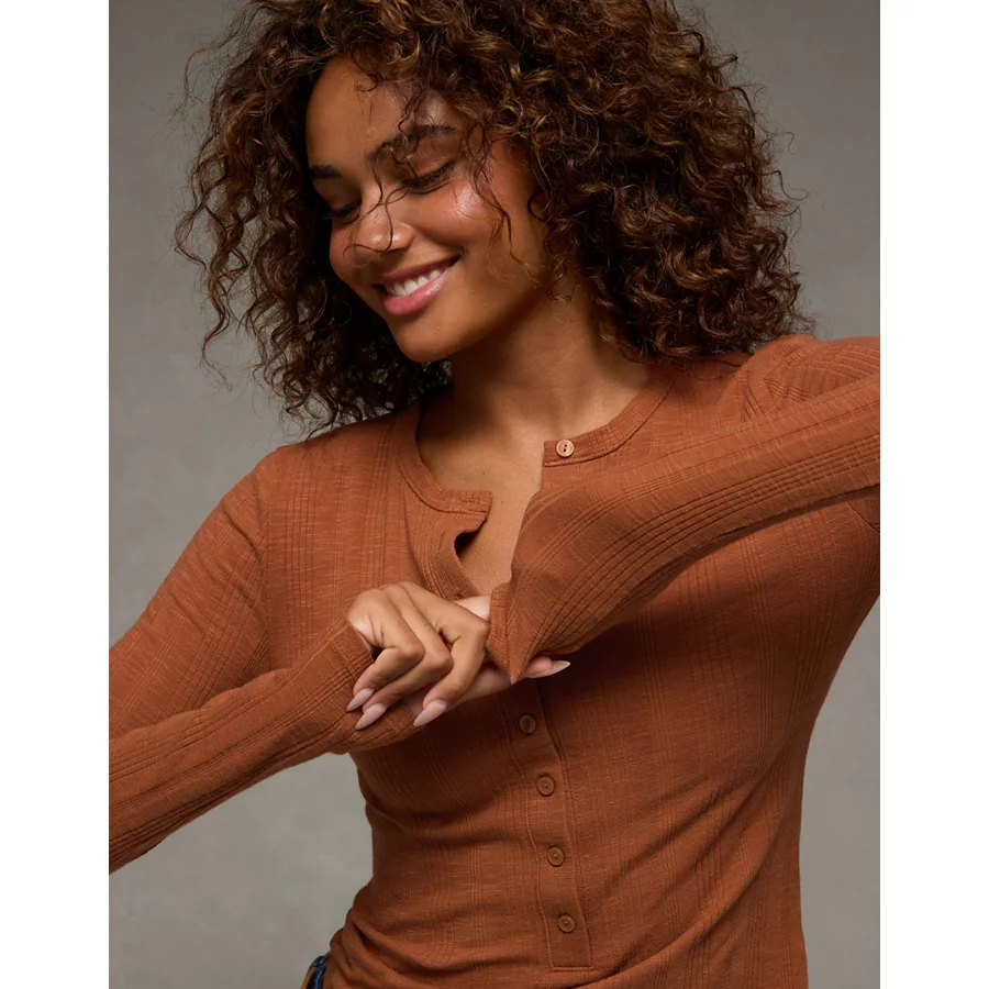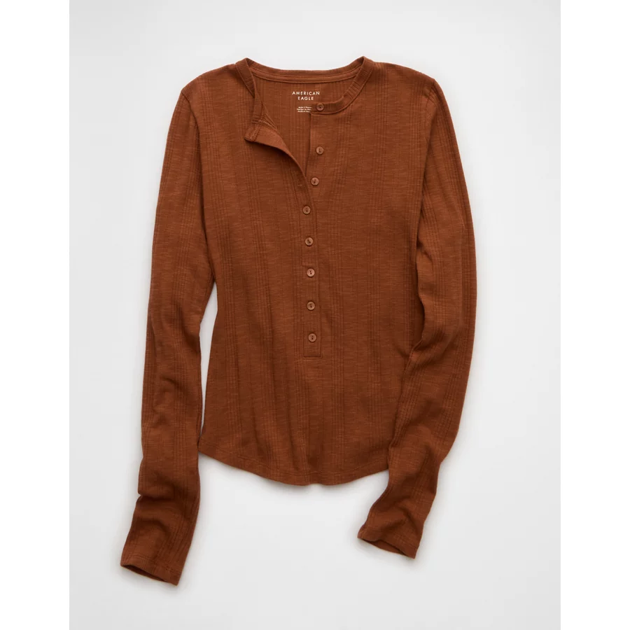AE Long Sleeve Henley T-Shirt – Amber Brown