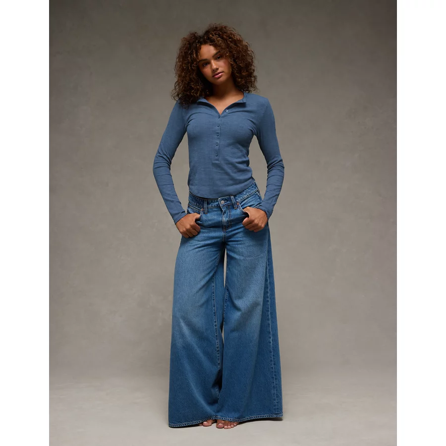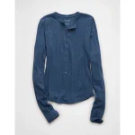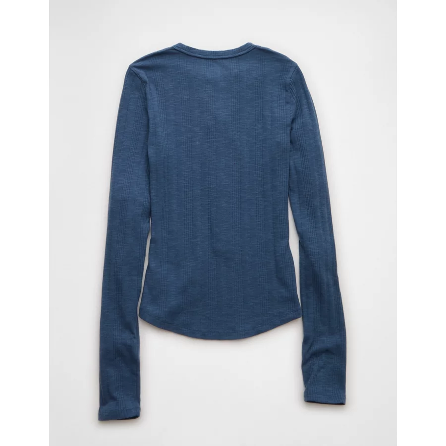 AE Long Sleeve Henley T-Shirt - Dark Brown