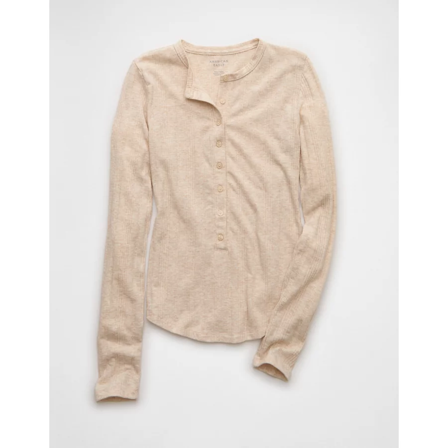 AE Long Sleeve Henley T-Shirt – Oatmeal