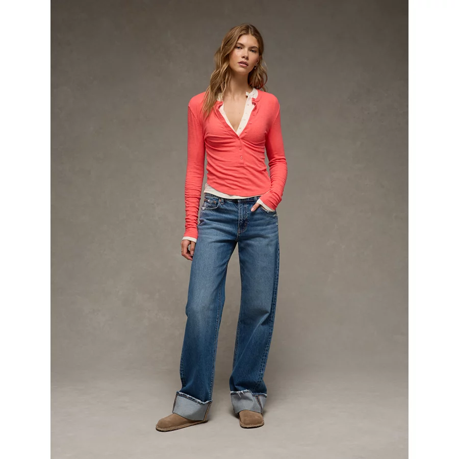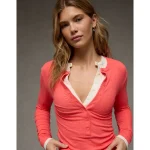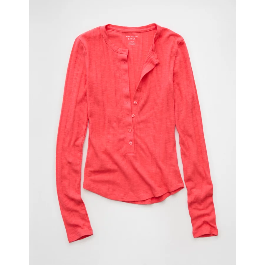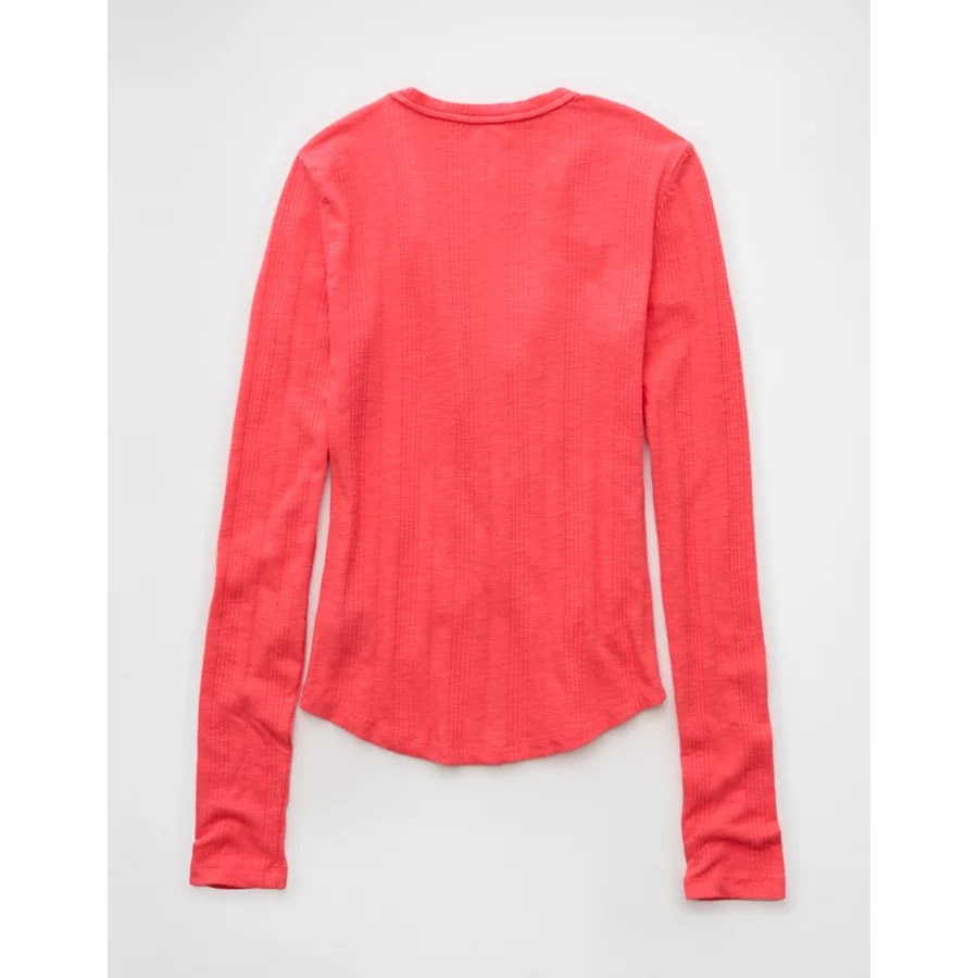 AE Long Sleeve Henley T-Shirt – Pink