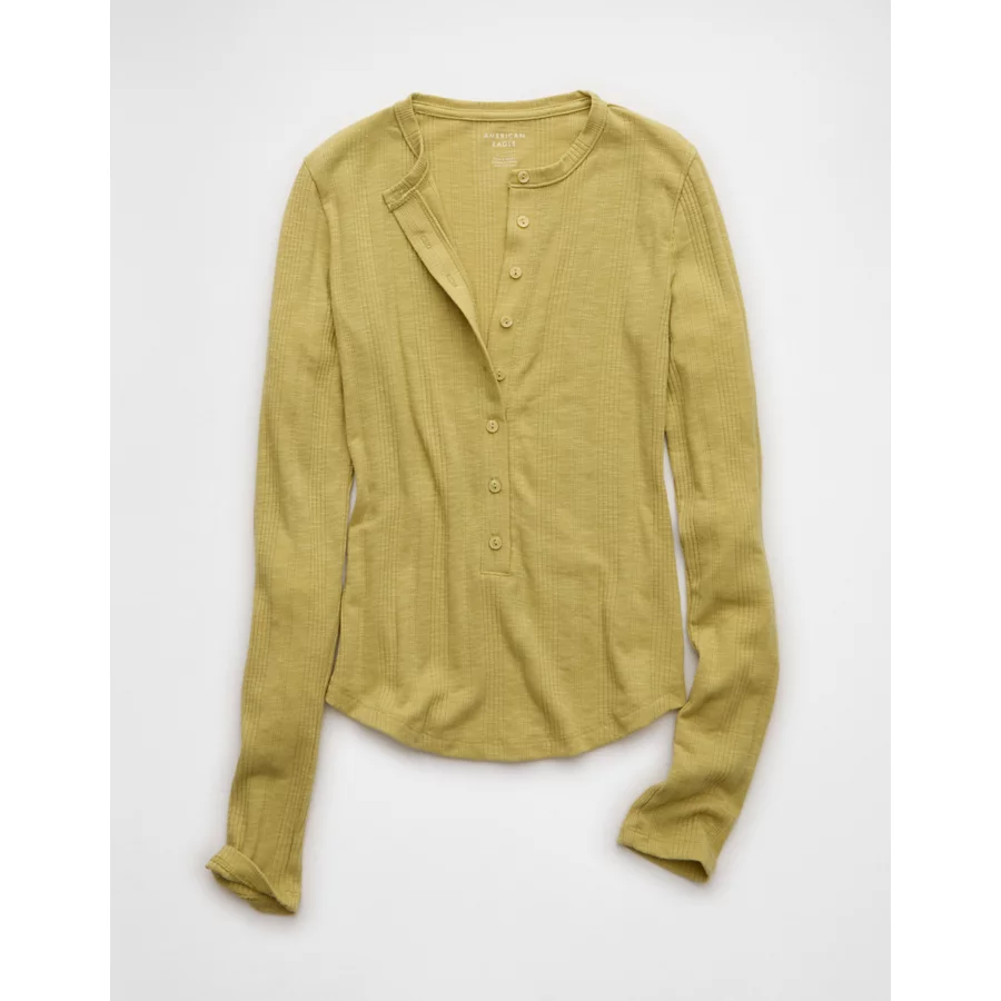 AE Long Sleeve Henley T-Shirt – Washed Olive