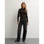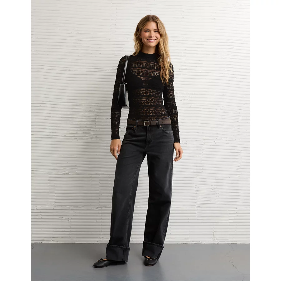 AE Long Sleeve Mock Neck Lace Bodysuit – True Black