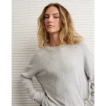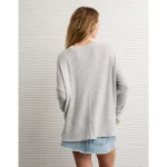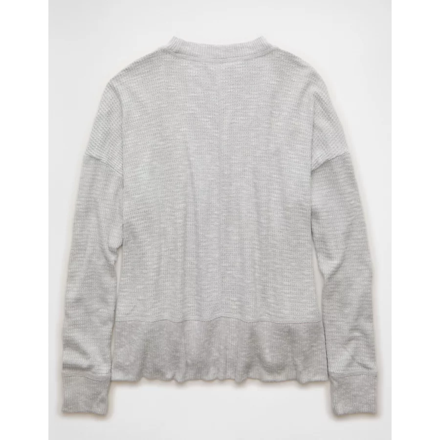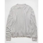 AE Long Sleeve Plush Crew Neck Top – Light Heather Gray