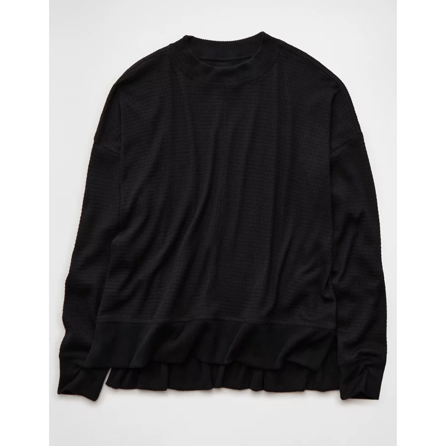 AE Long Sleeve Plush Crew Neck Top – True Black