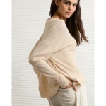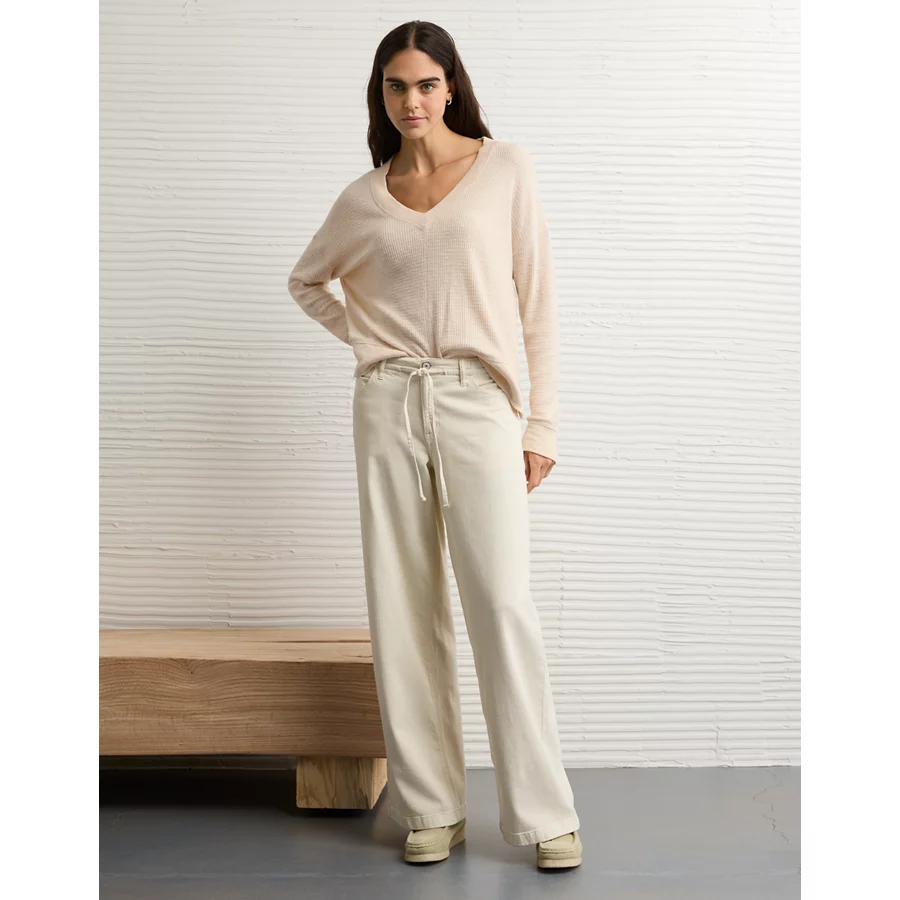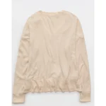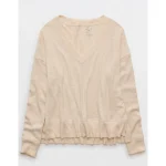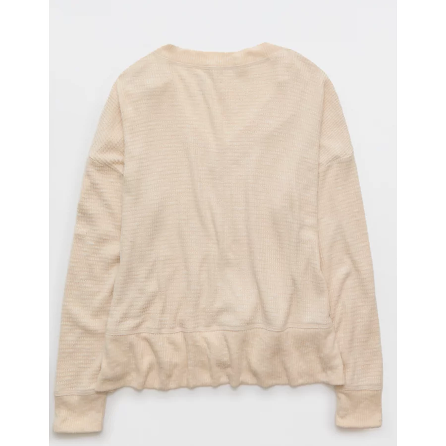 AE Long Sleeve Plush V-Neck Top – Oatmeal