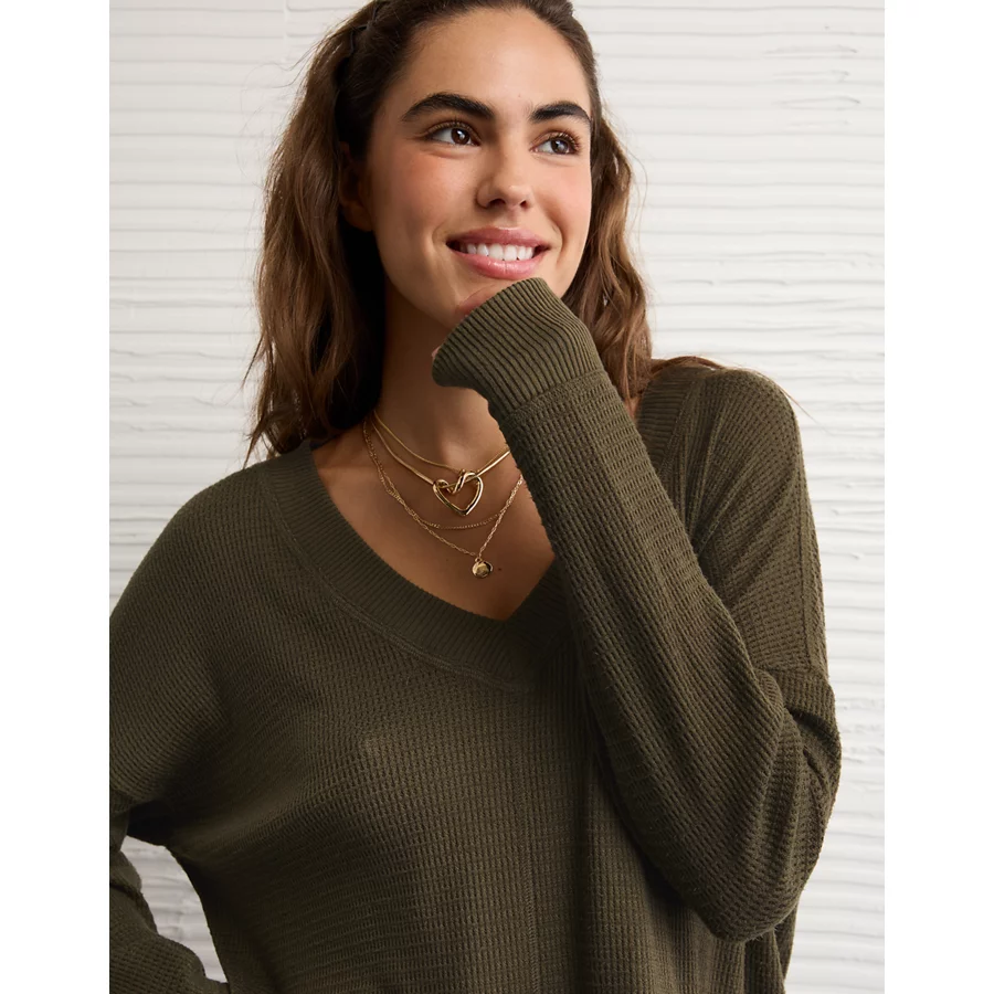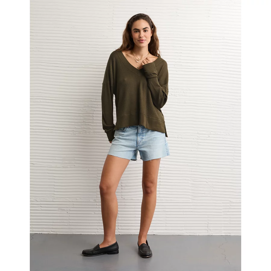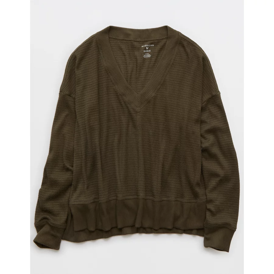 AE Long Sleeve Plush V-Neck Top – Olive