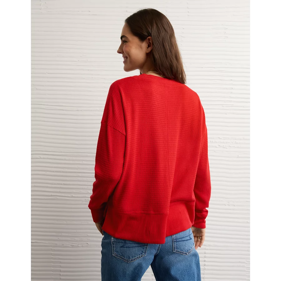 AE Long Sleeve Plush V-Neck Top – Ruby Kiss