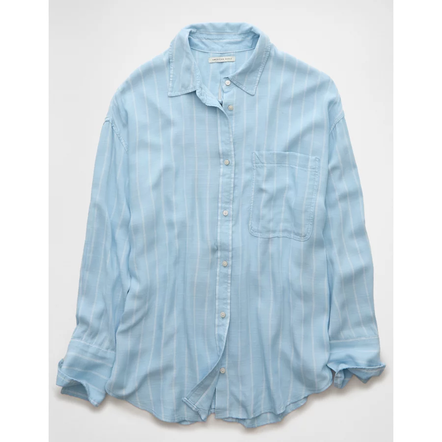 AE Long-Sleeve Tie Back Button-Up Shirt – Light Blue