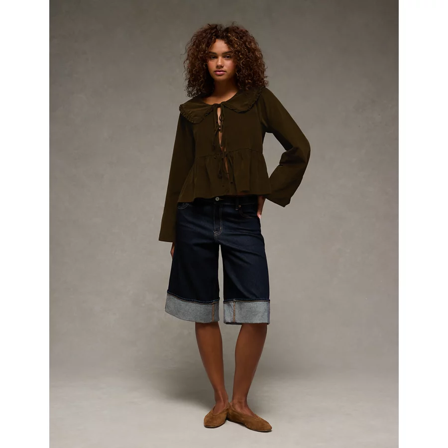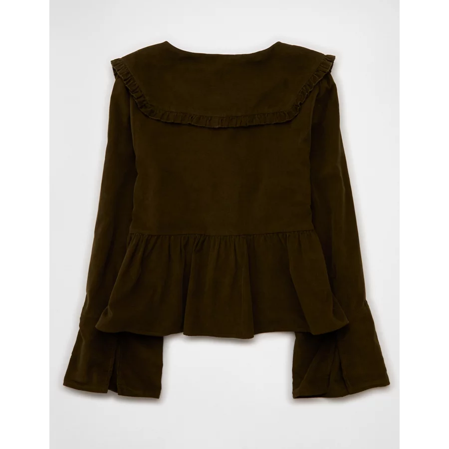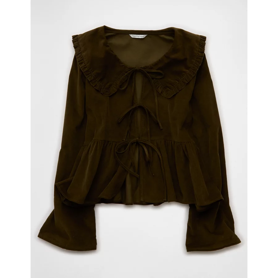 AE Long Sleeve Tie-Front Blouse – Olive