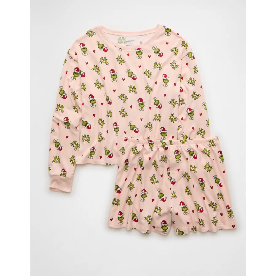 AE Luxe Plush Grinch PJ Set – Pink Note