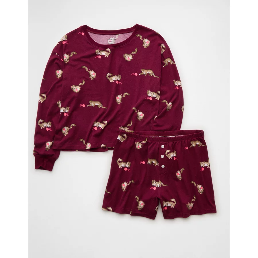 AE Luxe Plush Holiday PJ Set – Antique Rose