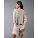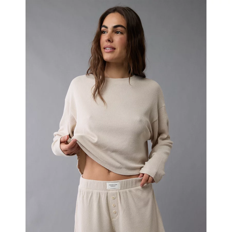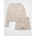 AE Luxe Plush Waffle Tee + Short Lounge Set – Cream