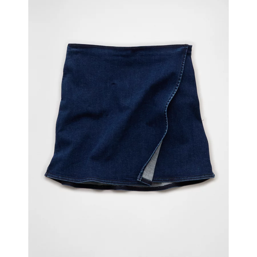 AE Next Level High-Waisted Denim Mini Wrap Skort – Dark Wash