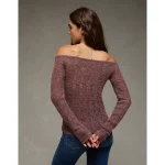AE Off-the-Shoulder Sweater Mini Dress - Brown