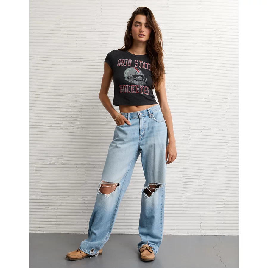 AE Ohio State Buckeyes Graphic Cropped Baby Tee – Faded Black
