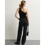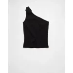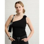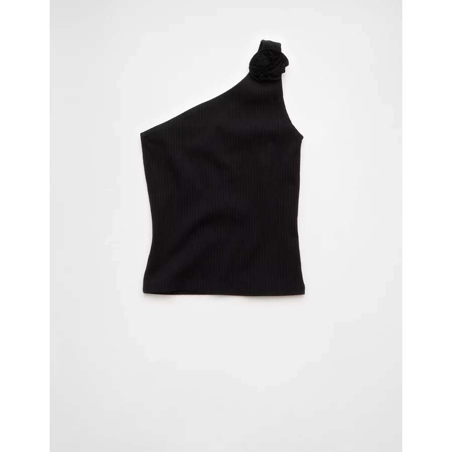 AE One Shoulder Rosette Tank Top – Black