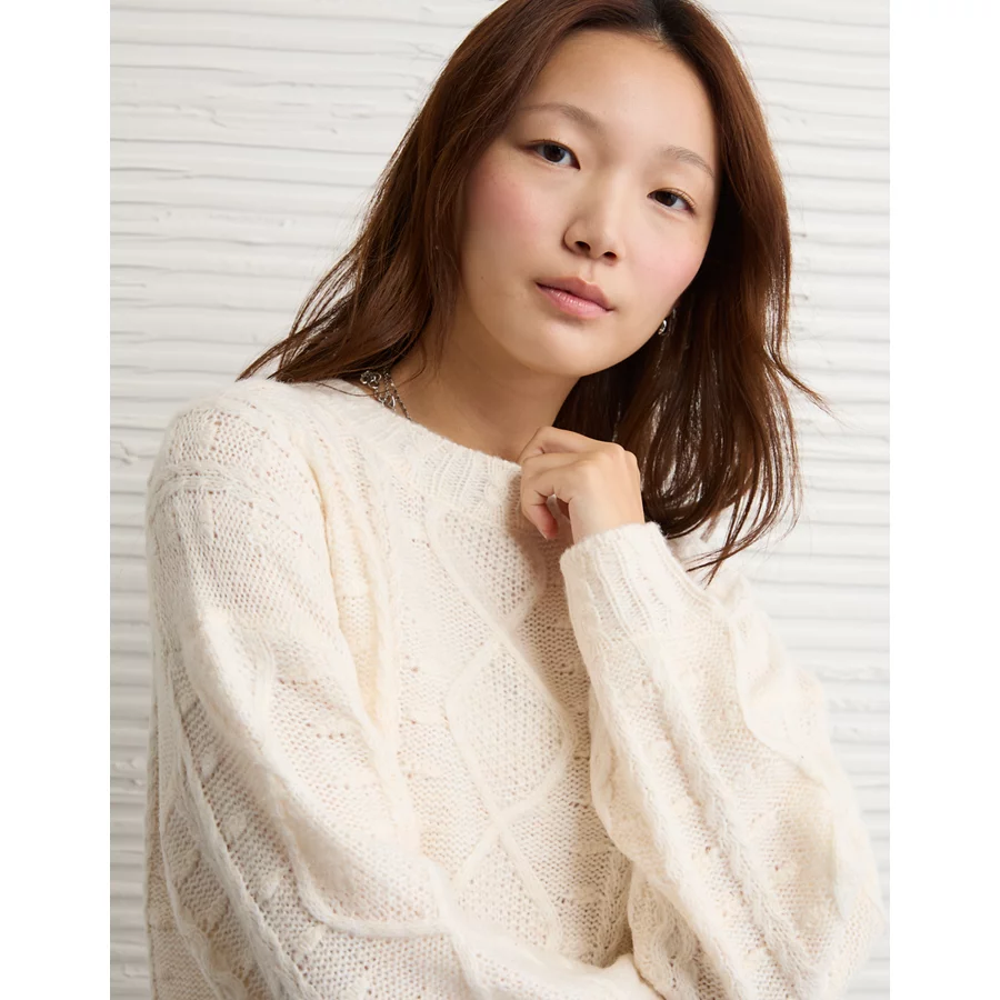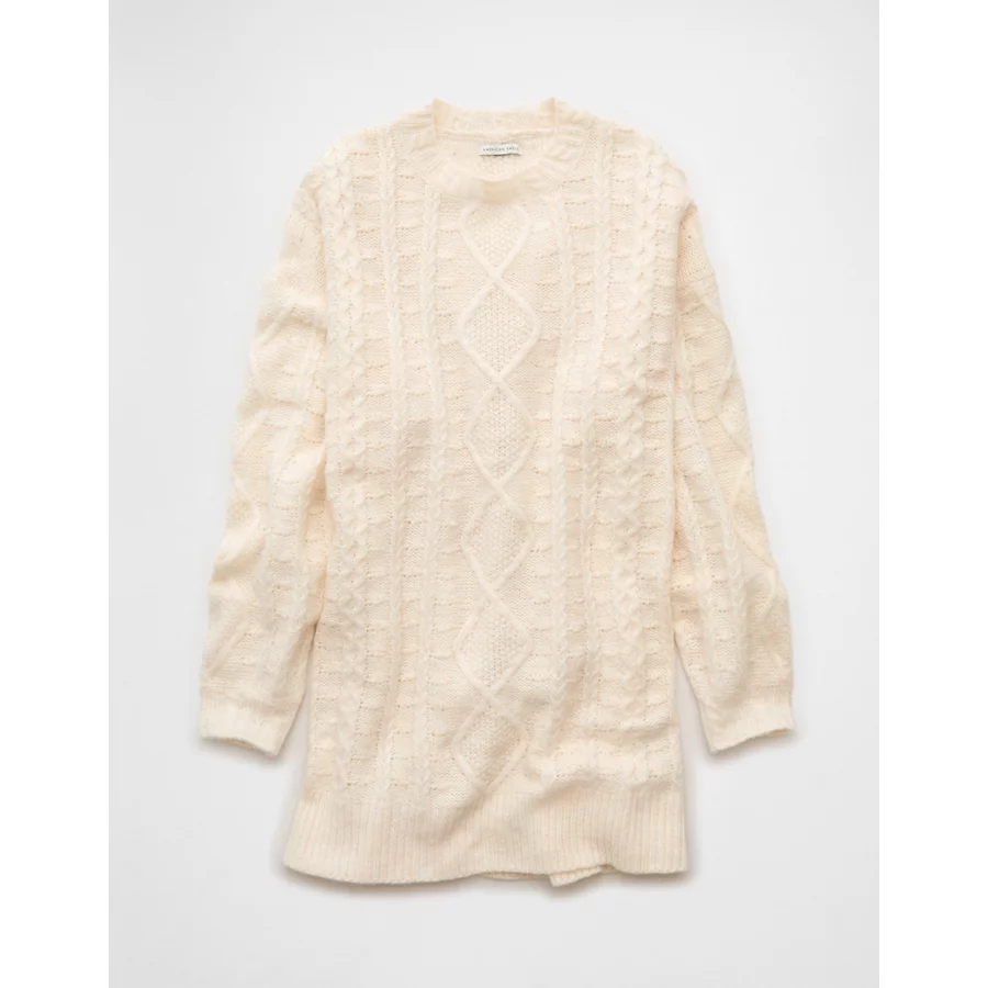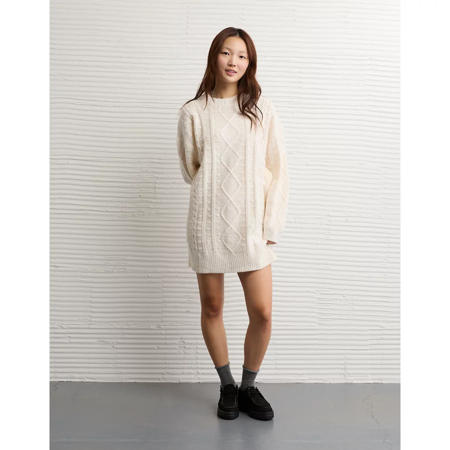 AE Oversized Cable Knit Sweater Dress – Cream