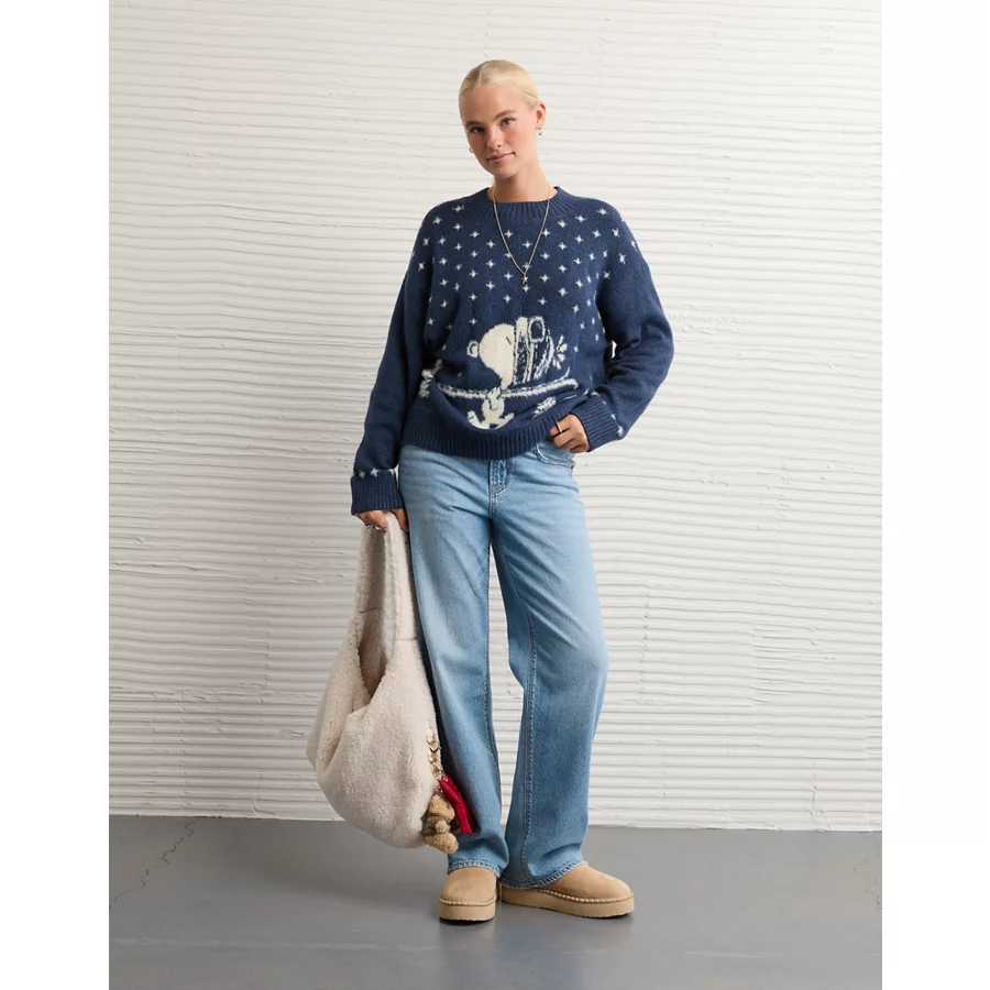 AE Oversized Snoopy Graphic Sweater – Navy