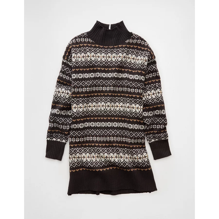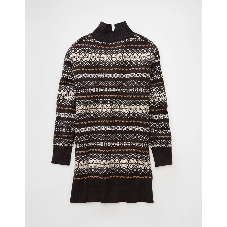 AE Oversized Turtleneck Sweater Mini Dress – Black