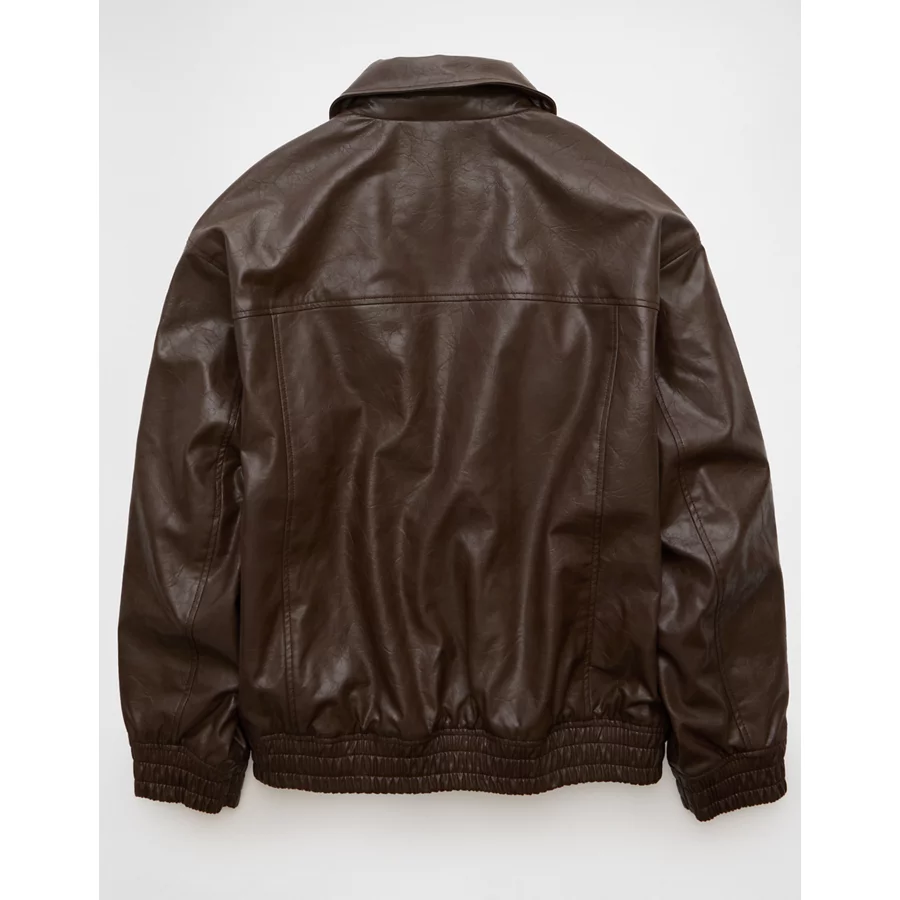 AE Oversized Vegan Leather Bomber Jacket – Brown