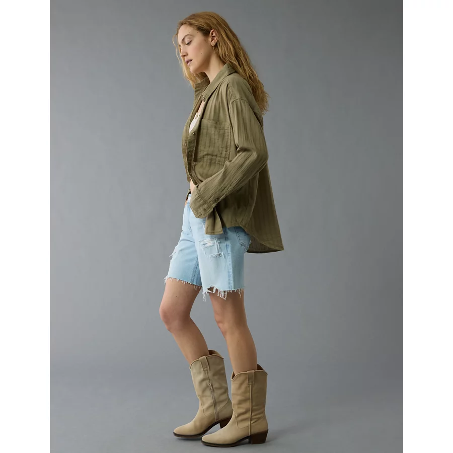 AE 8″ Dreamy Drape Stretch Low-Rise Baggy Jort – Medium Bright Indigo