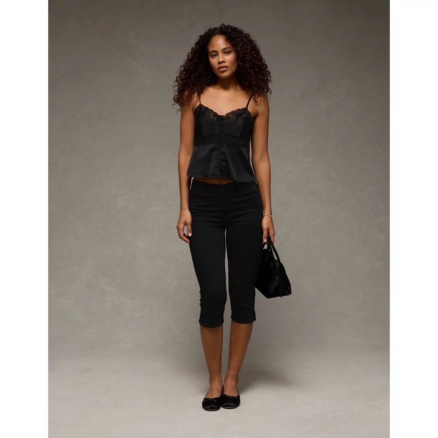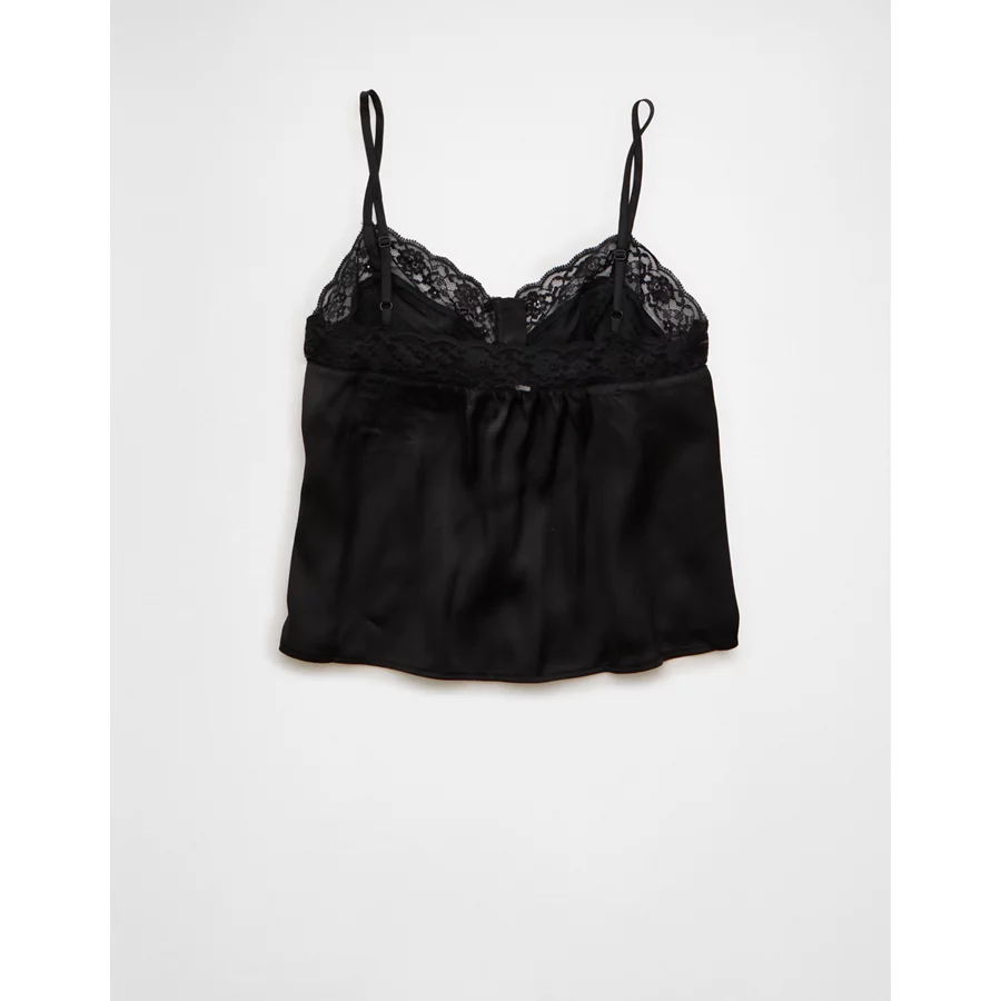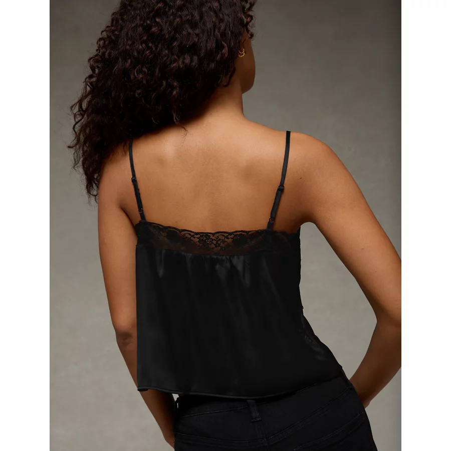 AE Pintuck Satin Cami Top – Black