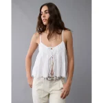 AE Pintuck Tie Front Cami – White