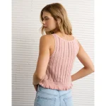 AE Pointelle Peplum Sweater Tank Top – Light Pink