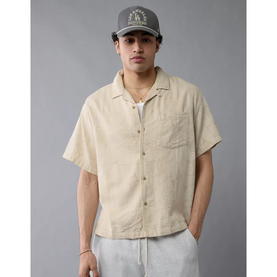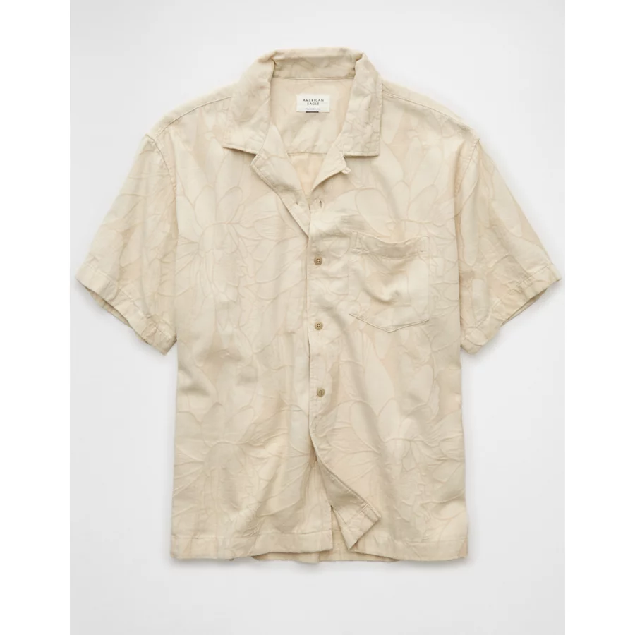 AE Poolside Linen-Blend Floral Button-Up Shirt – Khaki