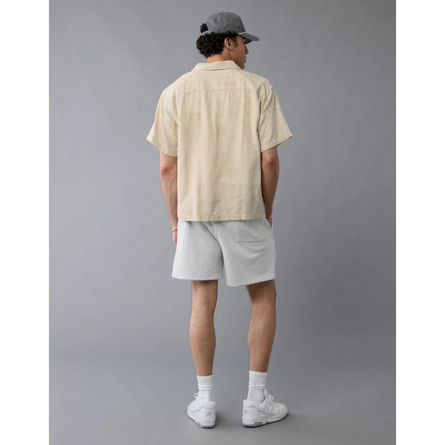 AE Poolside Linen-Blend Floral Button-Up Shirt - Cool White