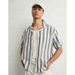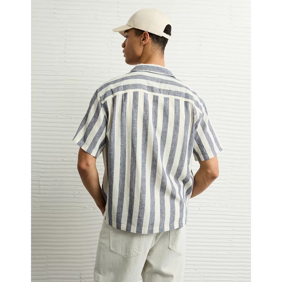 AE Poolside Linen-Blend Striped Button-Up Shirt – Black