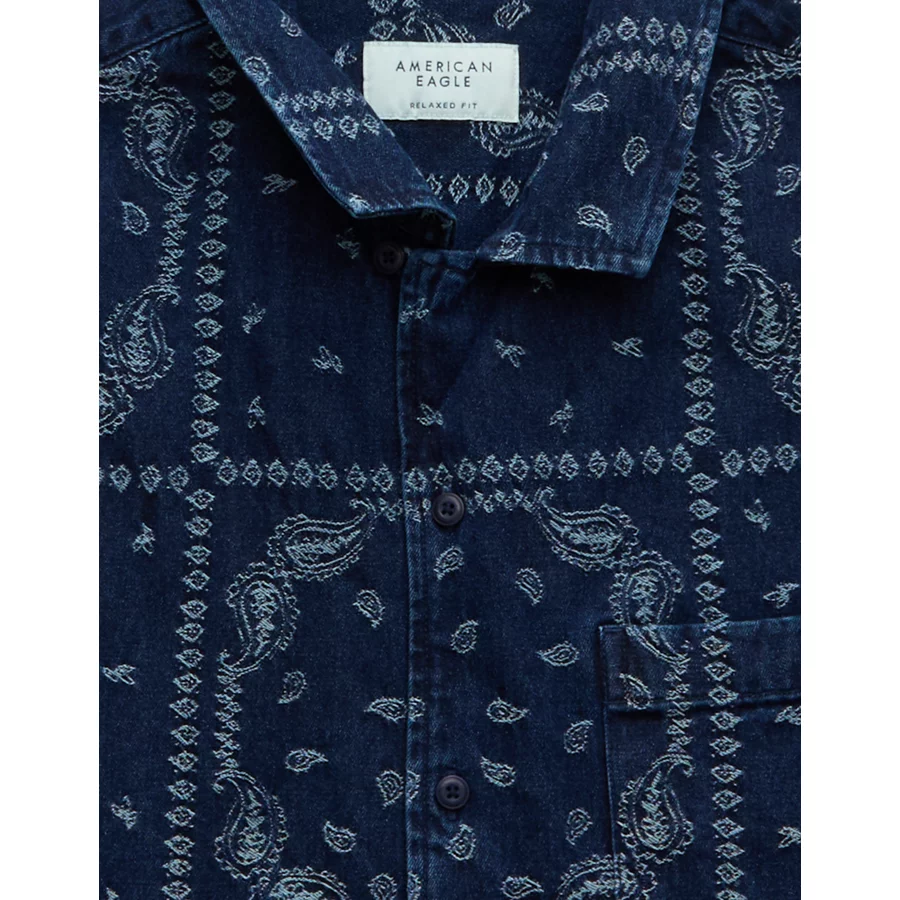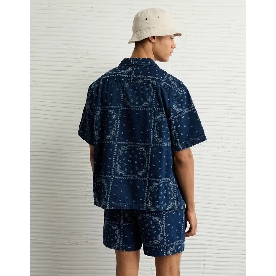 AE Poolside Printed Button-Up Shirt - Navy