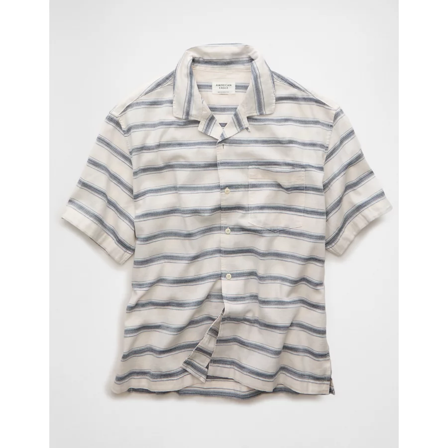 AE Poolside Striped Button-Up Shirt – Blue