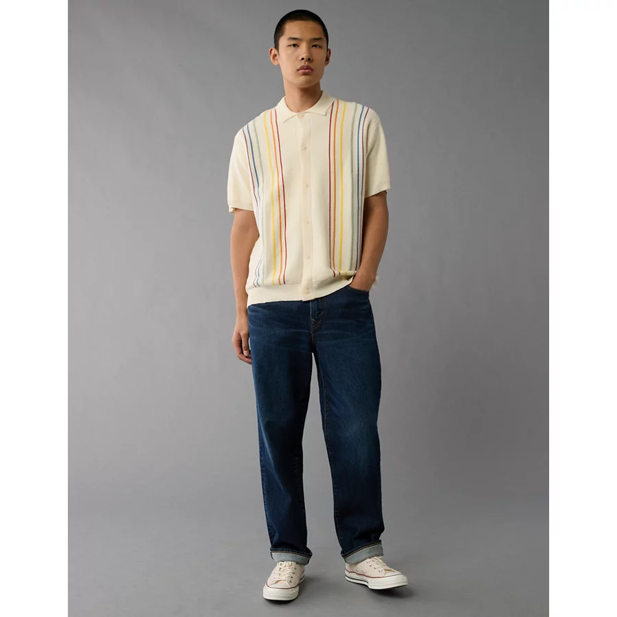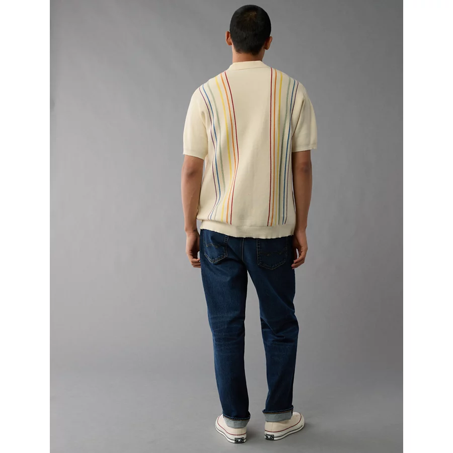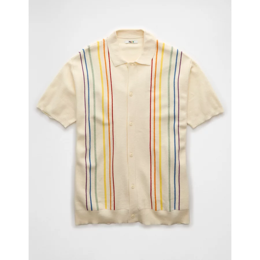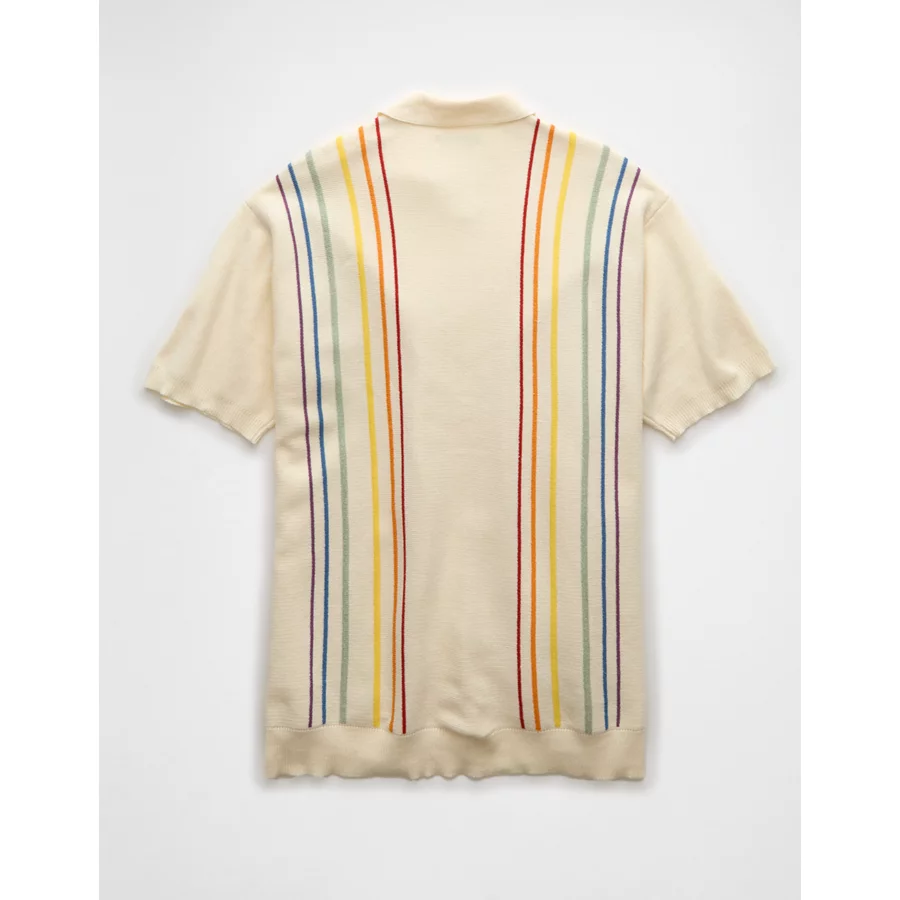 AE Pride Weekend Button-Up Sweater Polo Shirt – Cream