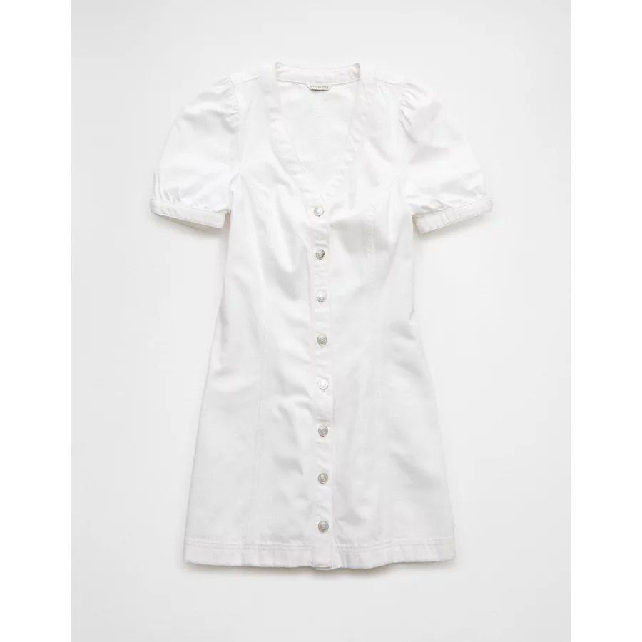 AE Puff Sleeve Denim Mini Shift Dress – White Washed