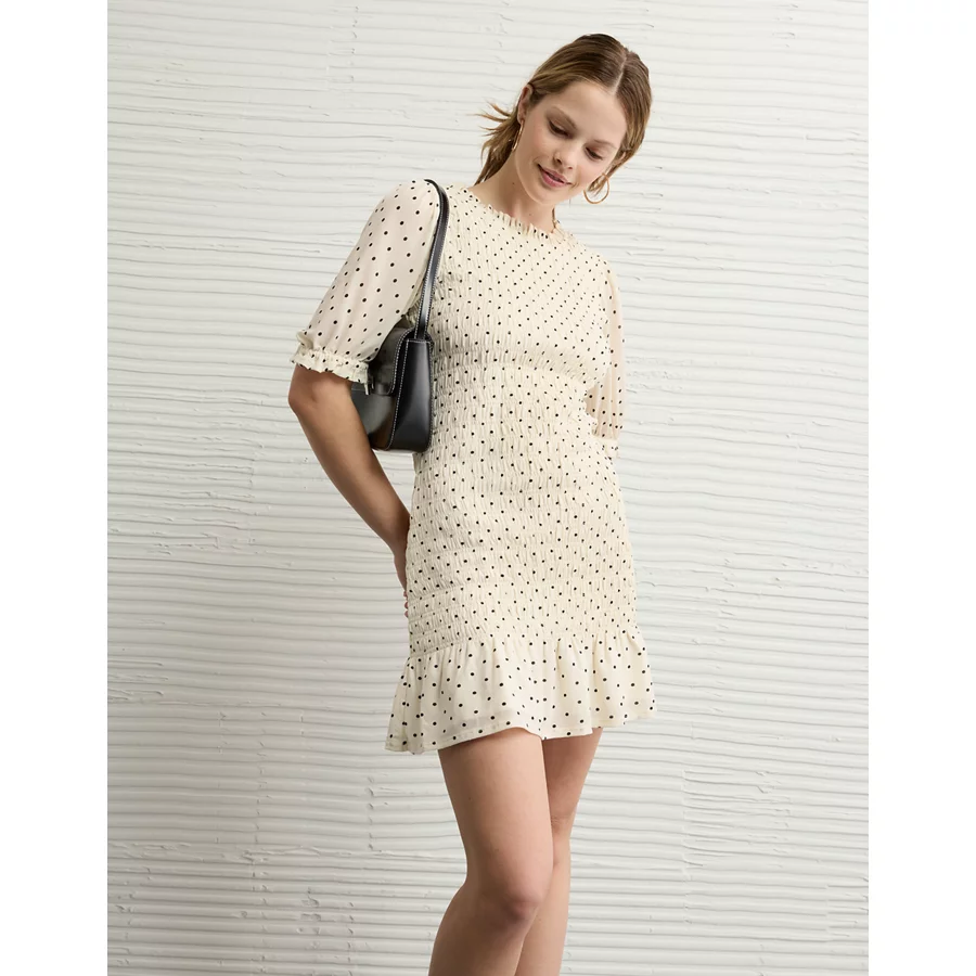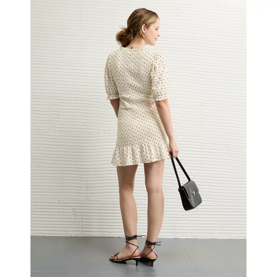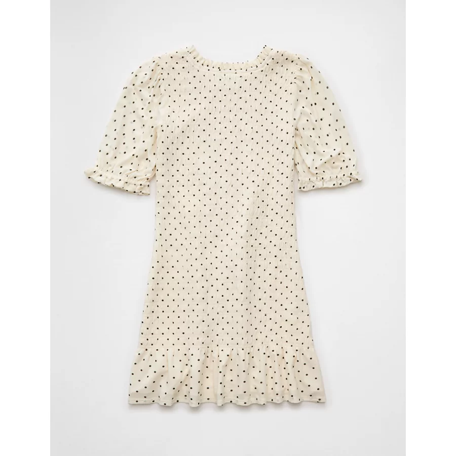 AE Puff Sleeve Smocked Mini Dress – Cream