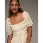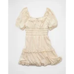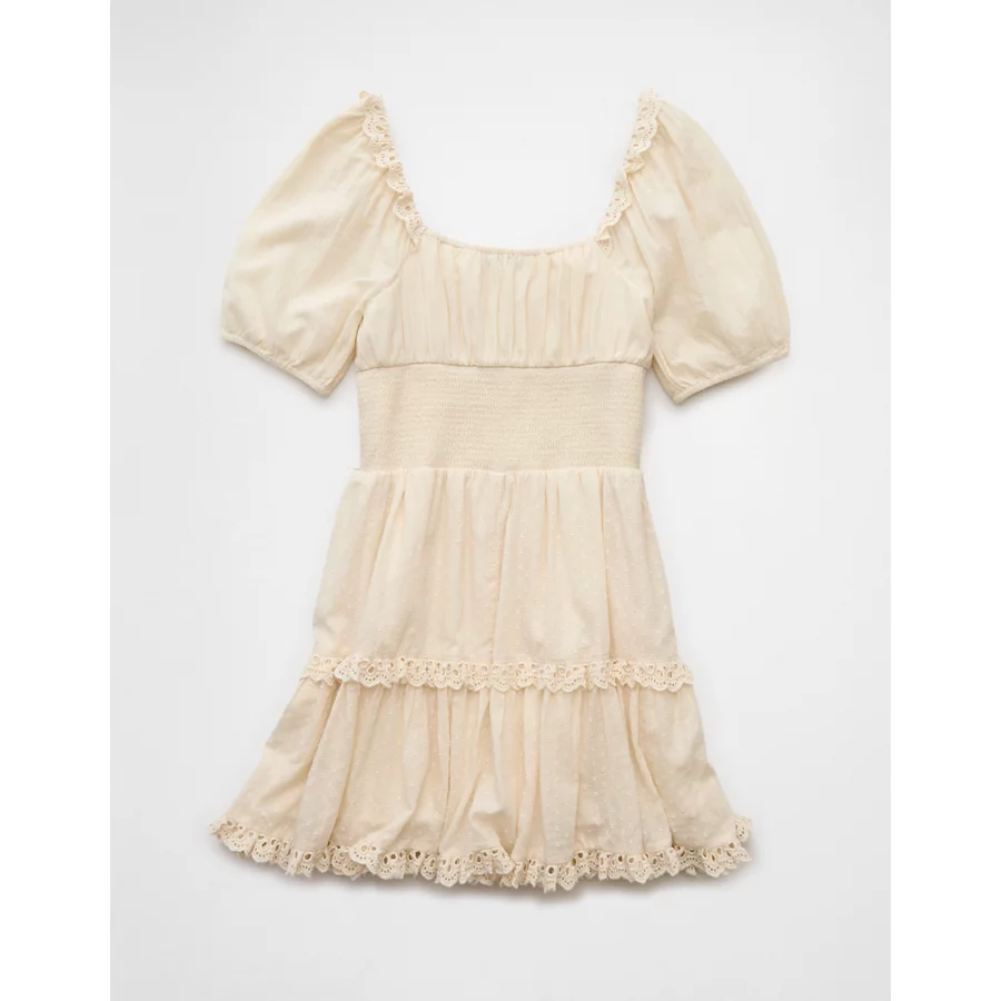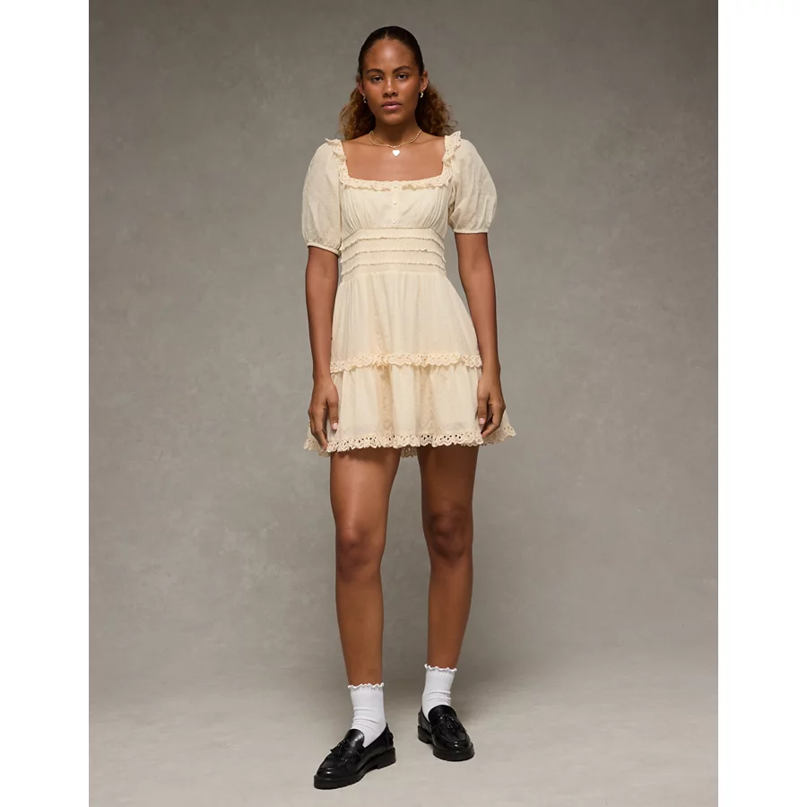 AE Puff Sleeve Smocked Mini Dress - Cream