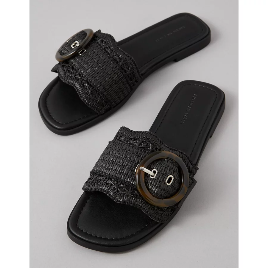AE Raffia Buckle Slide Sandal - Dark Brown