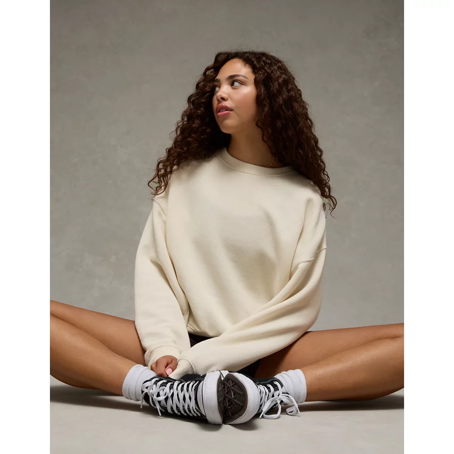 AE Relaxed Crew Neck Sweatshirt – Cream